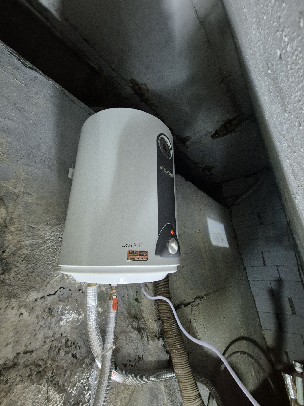 설치제품은 부식에 강하고 내구성이 우수한 귀뚜라미50리터 전기온수기입니다.