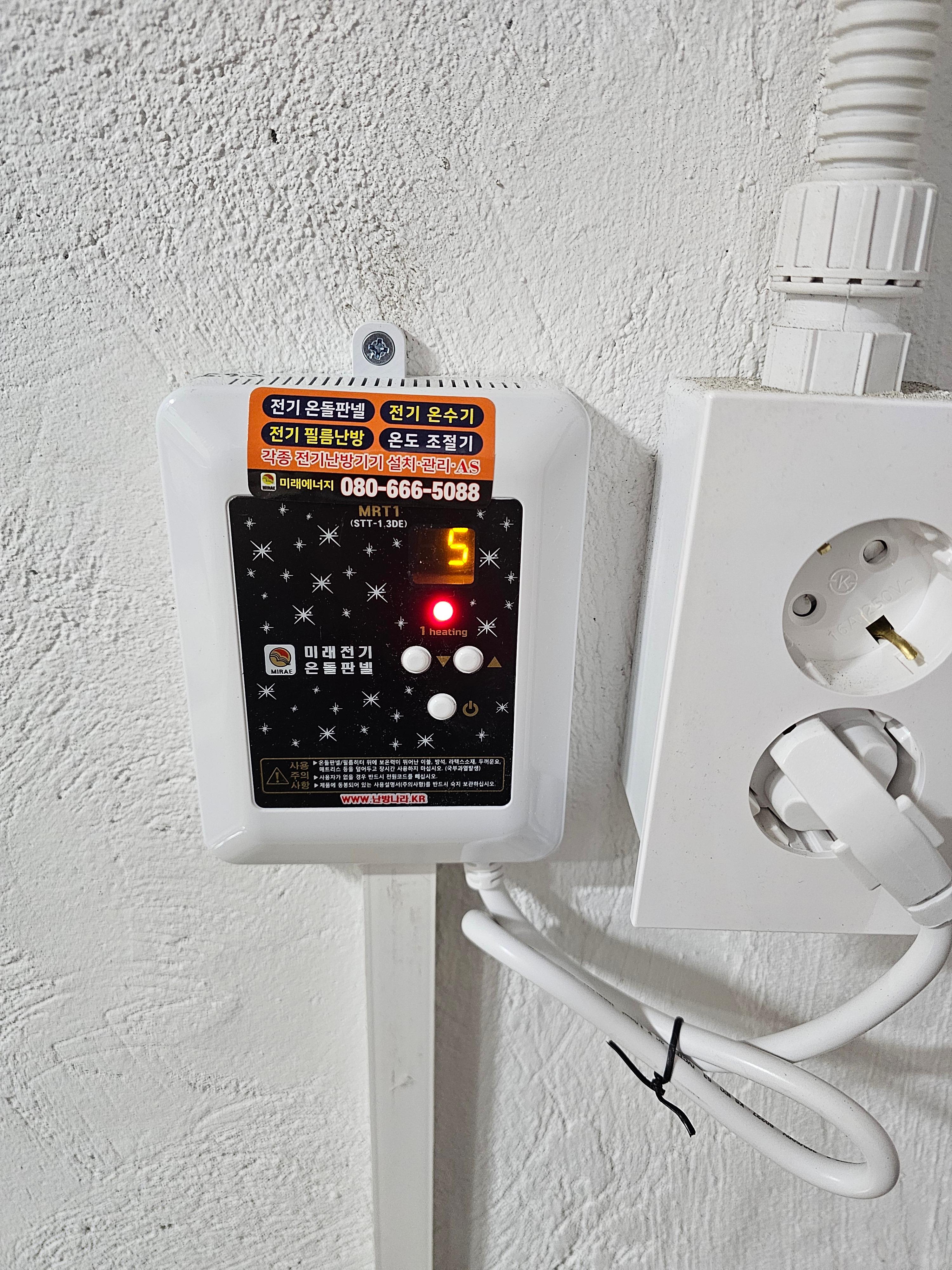 필름난방과 연결한 다음 난방이 잘 되는지 테스트를 해봅니다.