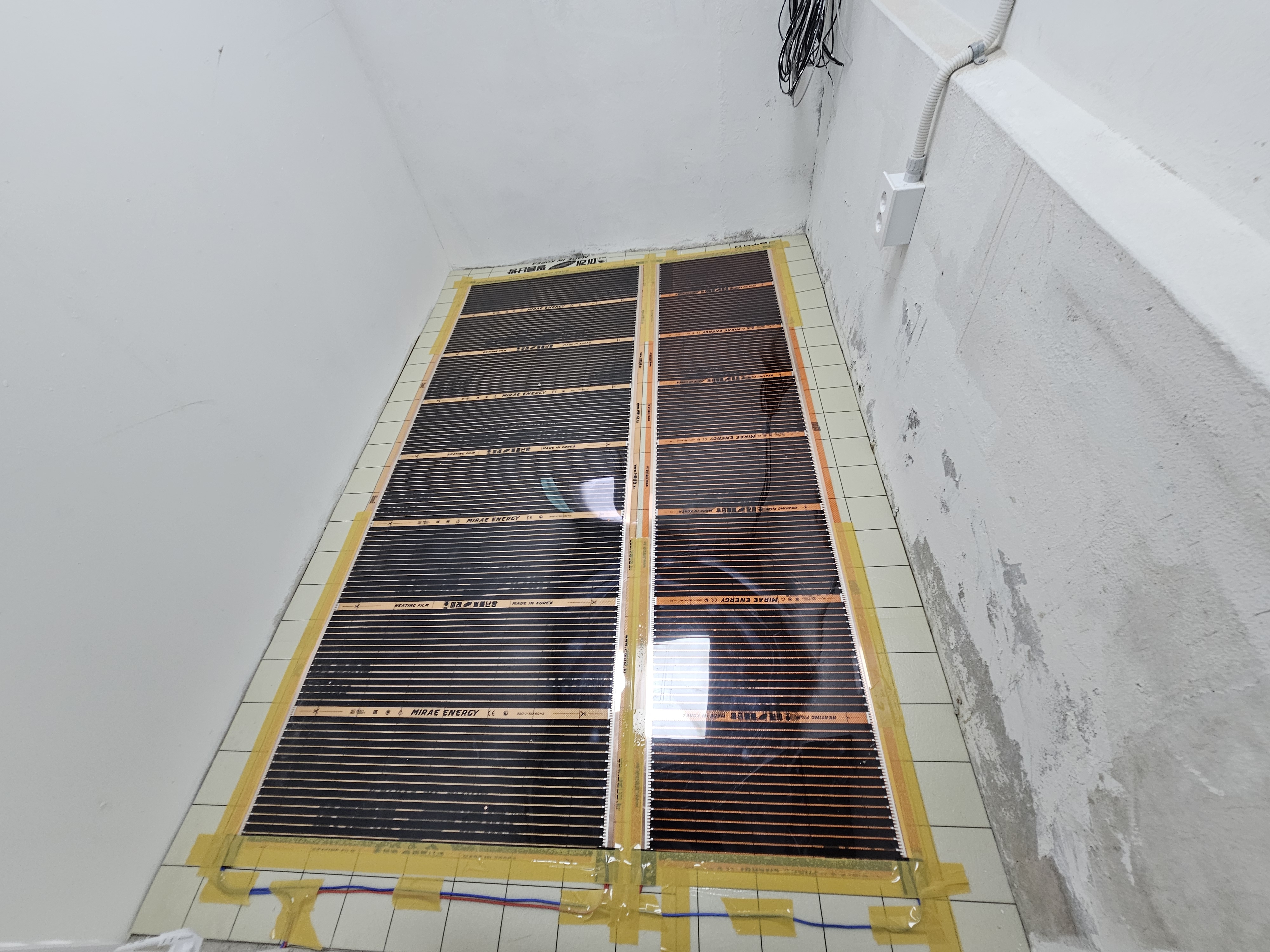 필름난방을 재단하여 배치 후, 결선작업을 하였습니다.