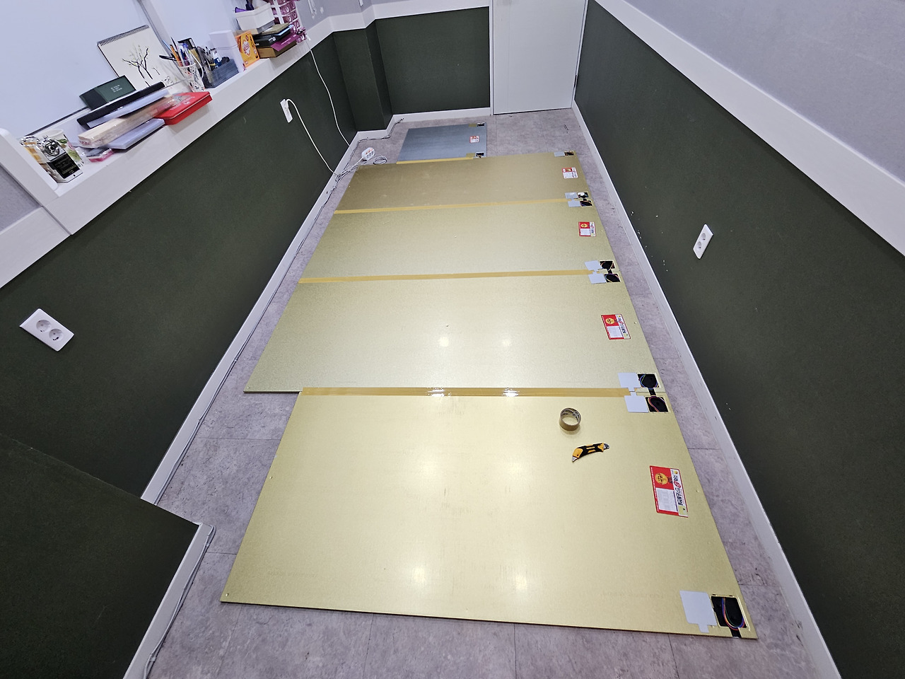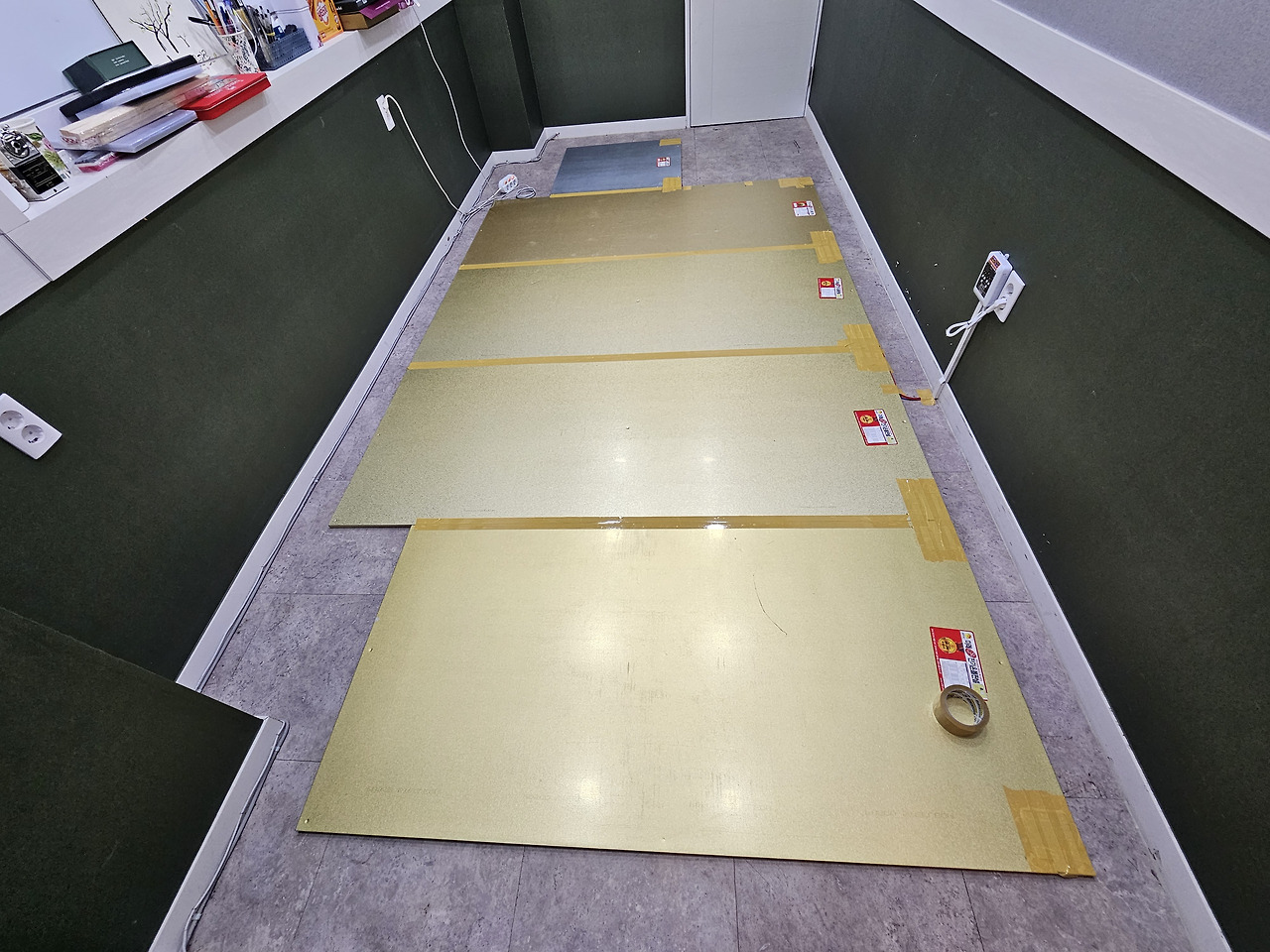바닥면의 크기에 맞추어 전기온돌판넬 배치를 하였습니다.