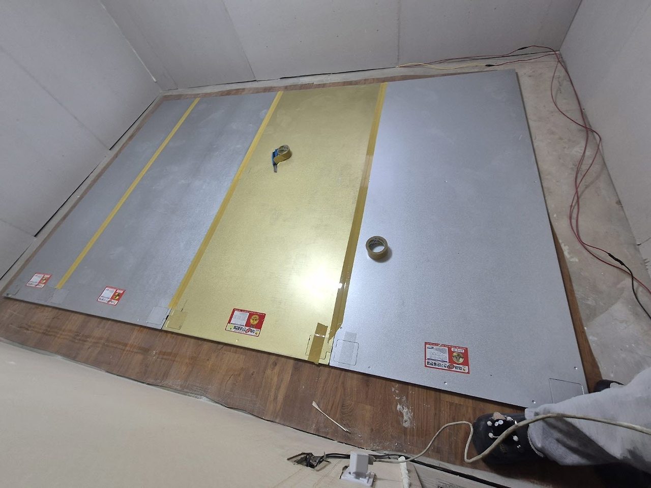 바닥면의 크기에 맞추어 전기온돌판넬 배치를 하였습니다.