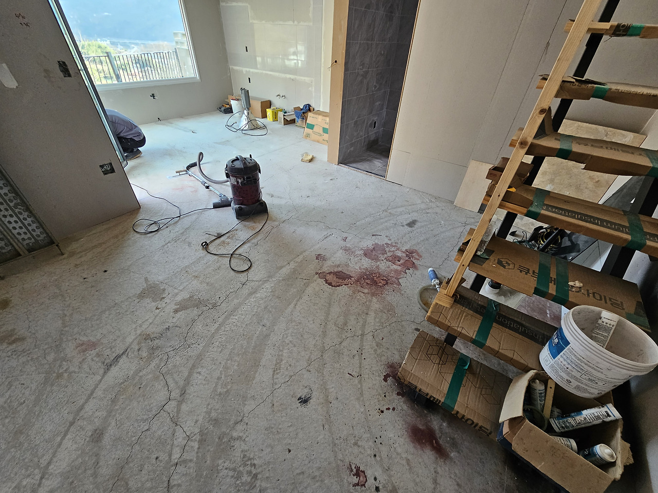 먼저 온돌판넬 시공 전 바닥면을 깨끗하게 청소를 하였습니다.