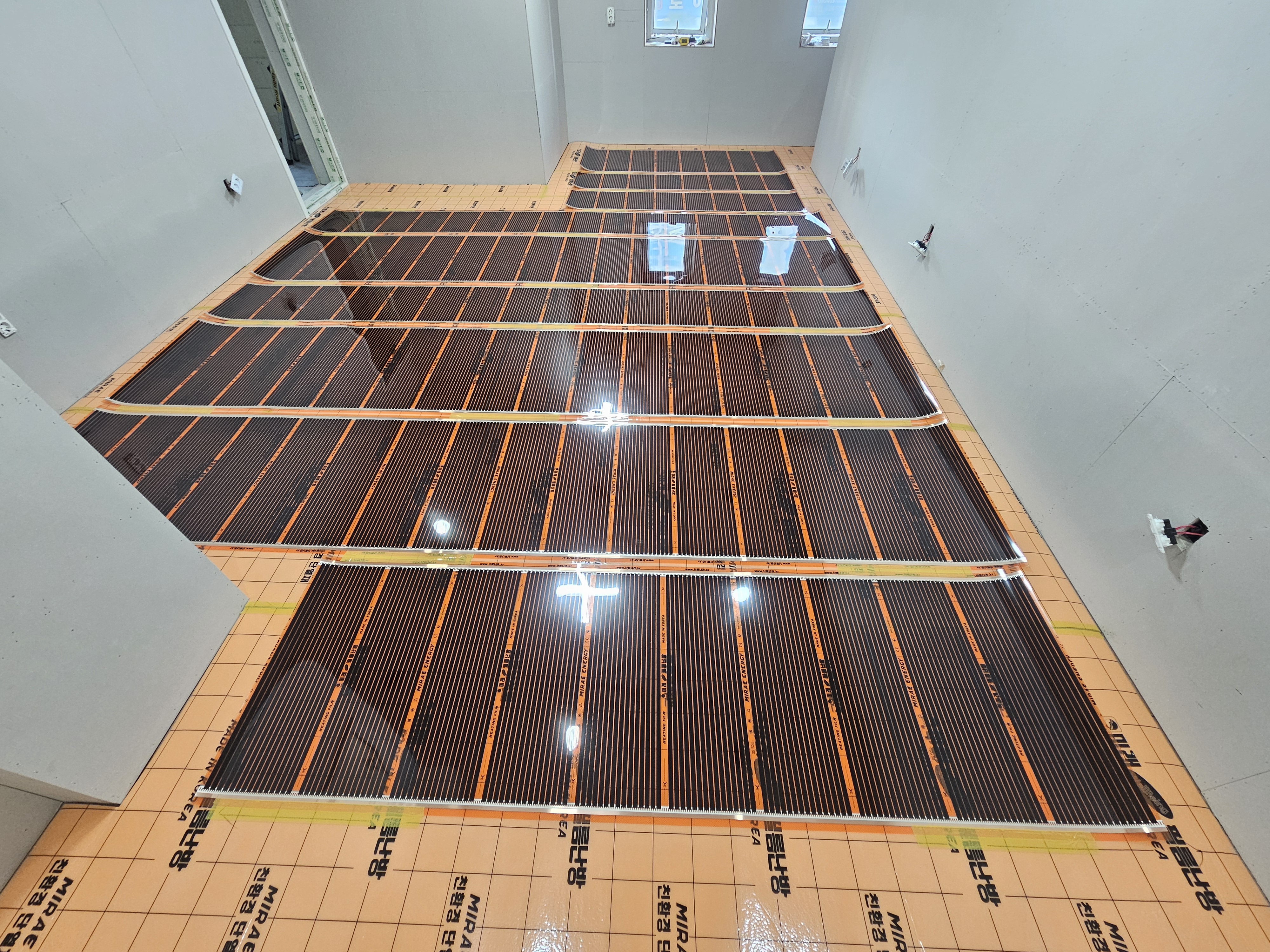 필름난방을 재단하여 배치 후, 결선작업을 진행하였습니다.