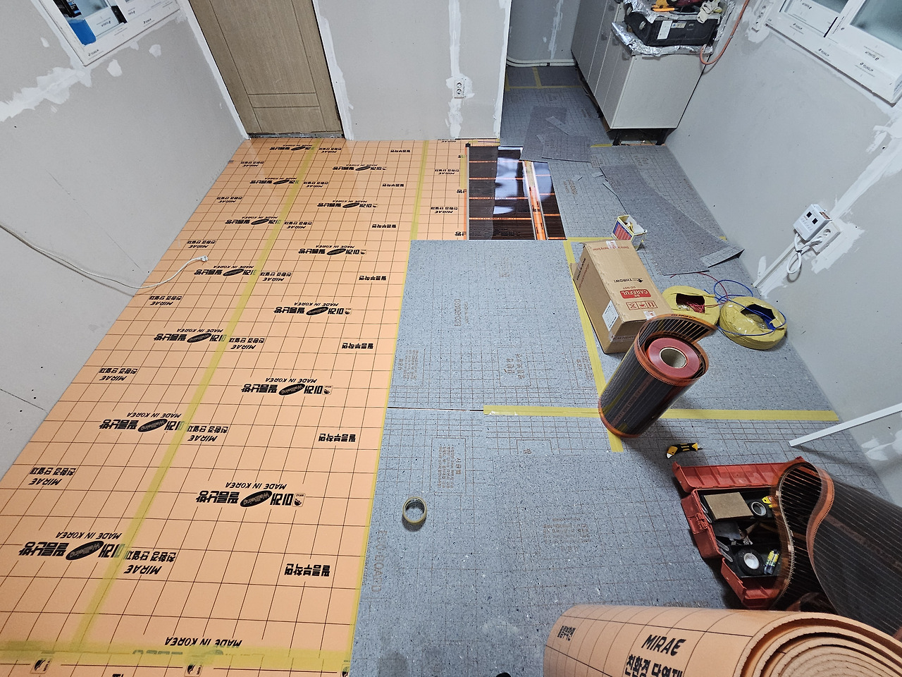 필름난방을 재단하여 배치 후, 결선작업을 진행하였습니다.