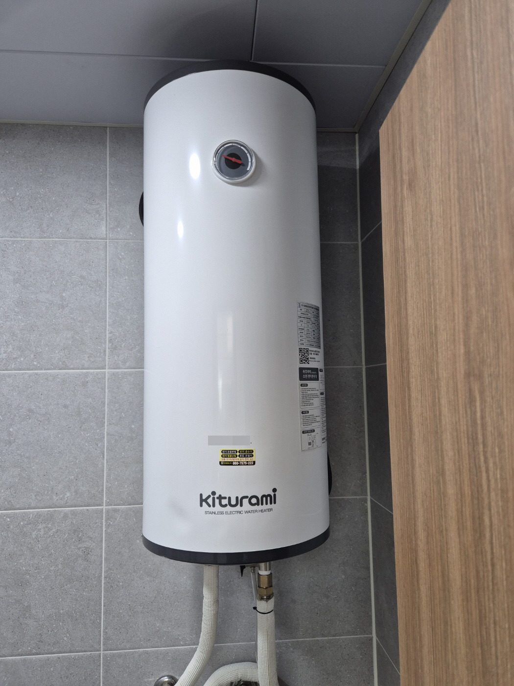 설치제품은 부식에 강하고 내구성이 우수한 귀뚜라미50리터 전기온수기입니다.